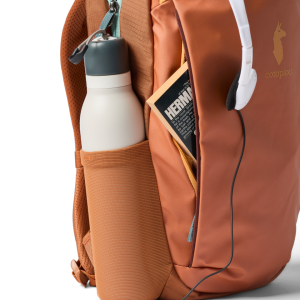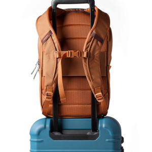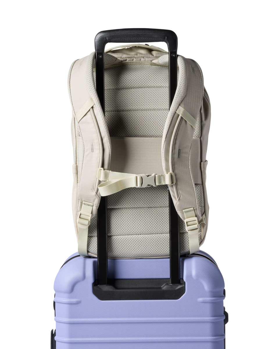 For commuters and travelers alike. the Allpa 18L Daypack hauls all your essentials from point A to point B in style while keeping you organized. This traditional panel-loader pack features a laptop and tablet sleeve and mesh exterior water bottle pockets for the daily. And when it’s time to switch from work to travel. the highly durable fabric can handle getting roughed up on trains and subways. and the pass-through luggage strap on the back lets this pack sit upright on a roller. Also available in 26L.