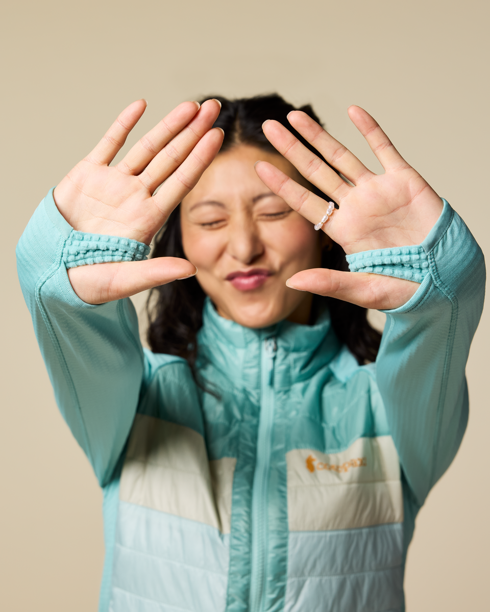 Run. hike. and seek adventure in this movement-ready. hybrid layer