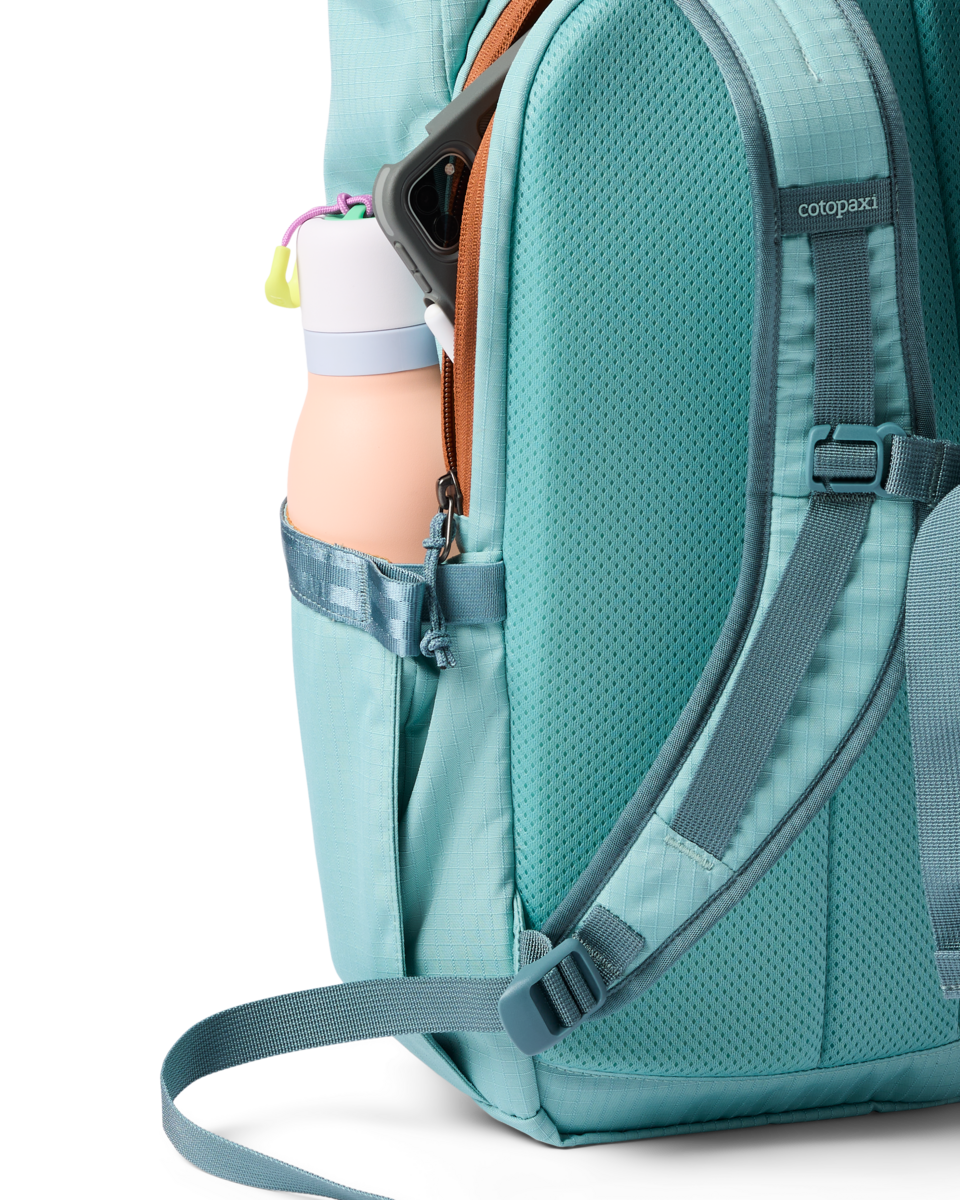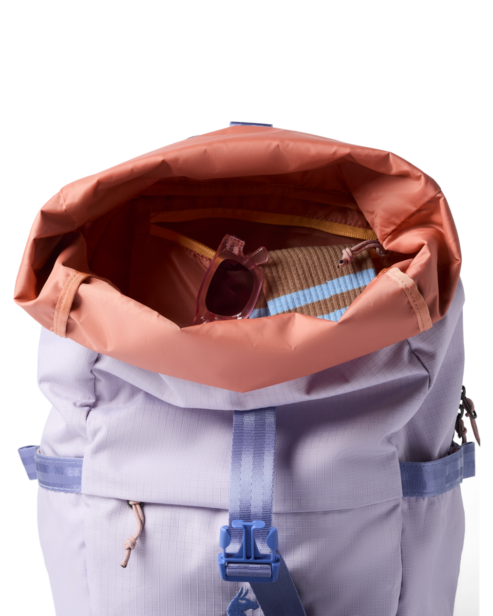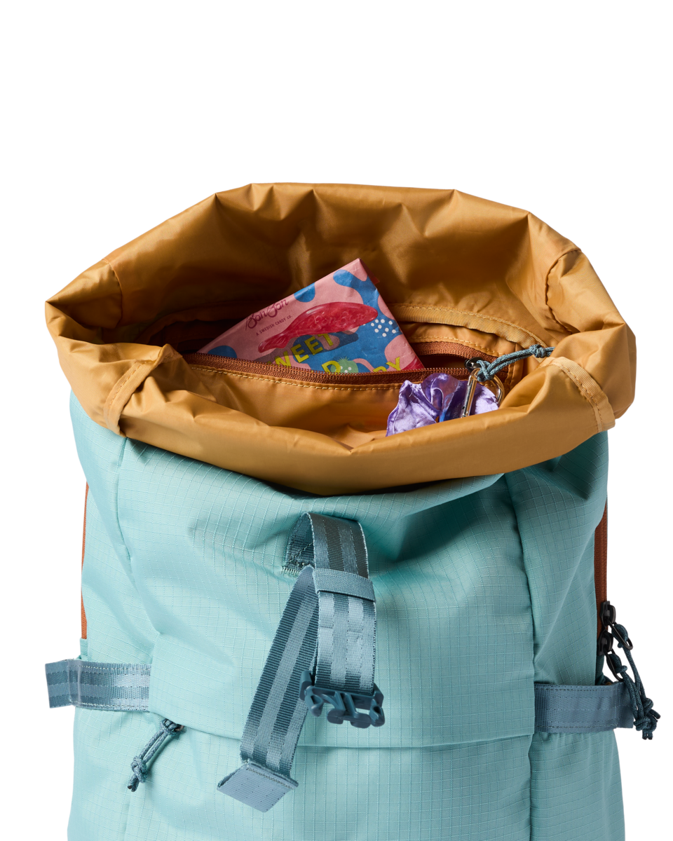 Small but mighty. we built the Consuelo 22L Daypack to accommodate shorter torsos. This reliable pack is built with recycled polyester. and the contoured straps provide extra space for people with busts. A roll top main compartment. dedicated laptop sleeve. zippered compartments. and water bottle sleeves make hitting the town a breeze.