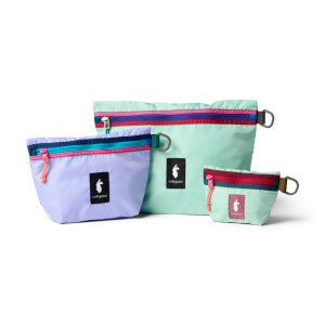 Whether you’re road-tripping somewhere for the weekend or living out of a backpack for two months. this set of three all-purpose pouches keeps you organized. They expand to hold your essentials and lay flat when not in use. These packs are made from lightweight 100% deadstock fabric with a no-fuss top zipper and D-ring for easy attachments.
