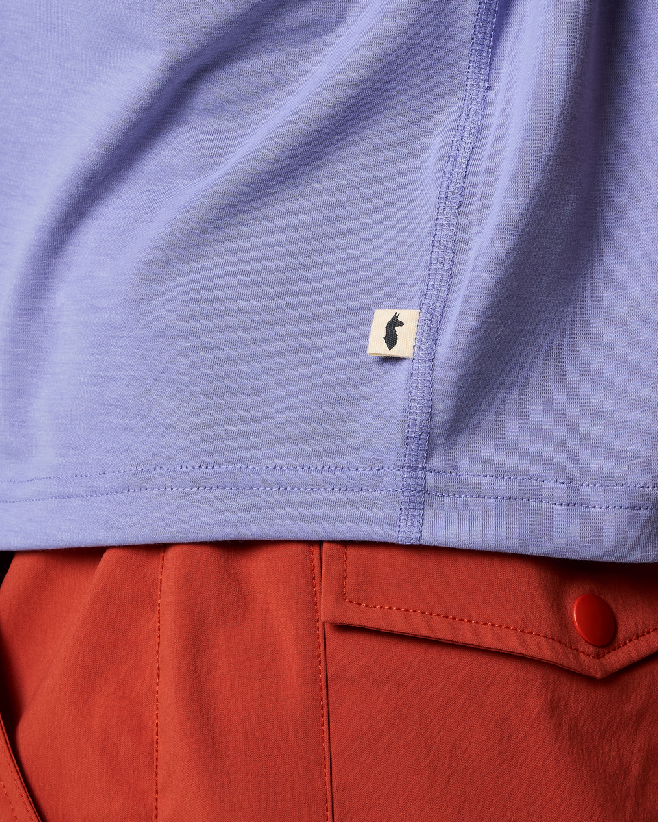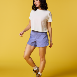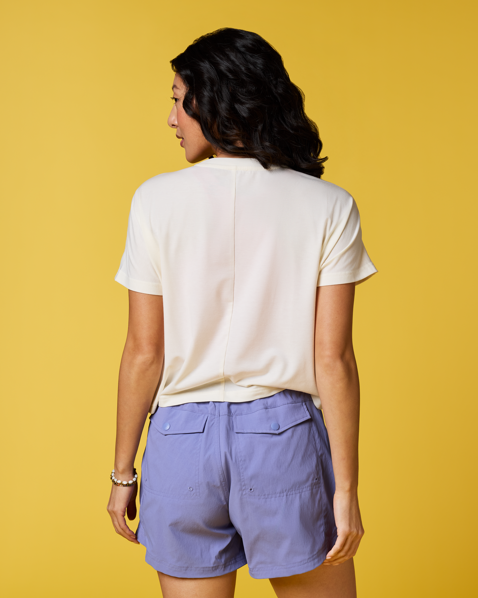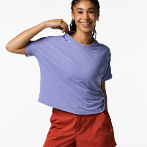 Scramble up high or stick your toes in the sand—the Empaca Crop T-Shirt is an adventure must-have. A stretchy and soft blend of recycled polyester. TENCEL™. and spandex makes this the ultimate companion for desert hikes or sunset cragging. and the cropped design pairs perfectly with high-waisted tights and denim cut-offs.
