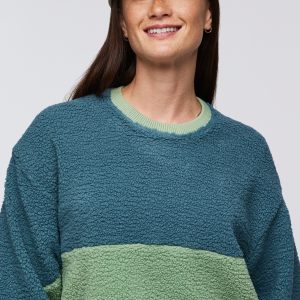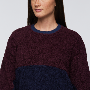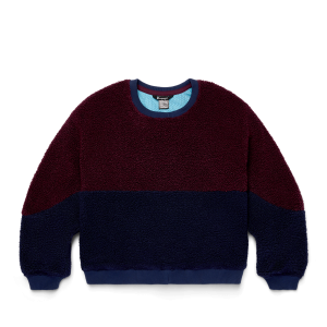 The High Pile Fleece Crew brings retro vibes to warm. durable. 100% recycled fabrics. With classic Cotopaxi colorblocking and a comfy oversized fit. this heavyweight crew can go from the backyard campfire to the ski town square.