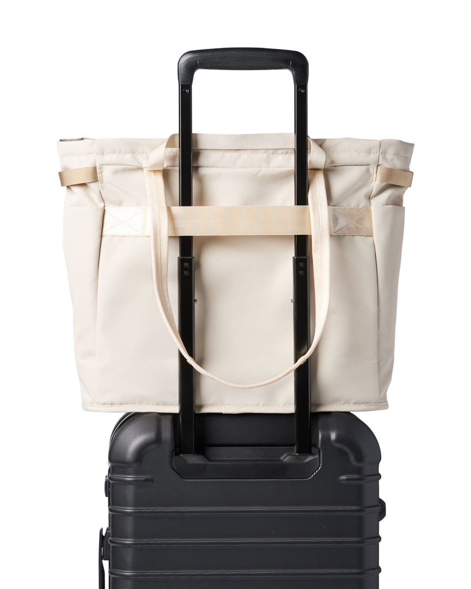 Farmers market treats. library books. or gym clothes—the Mente 22L Tote is our savior for busy days around town. This spacious bag is chock-full of features like hand and shoulder straps. water bottle pockets. a dedicated laptop sleeve. zippered compartments to keep all your essentials secure. and a luggage pass-through strap for easy travel.