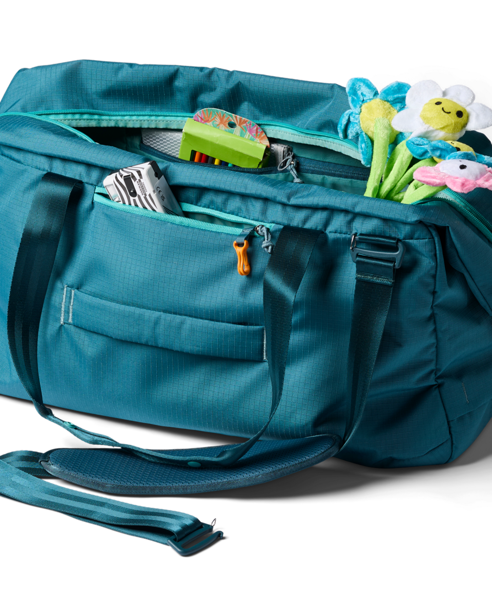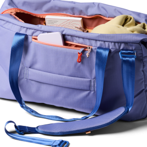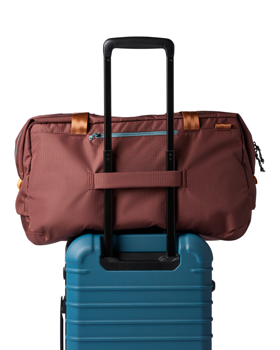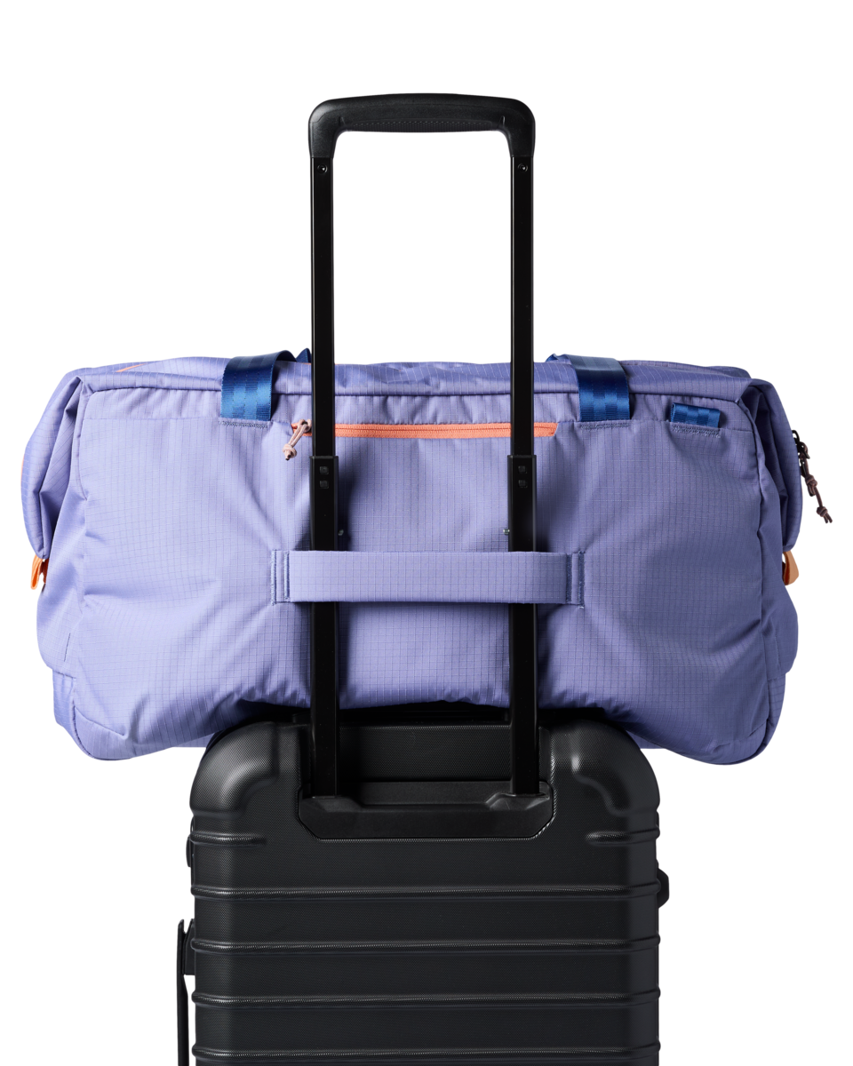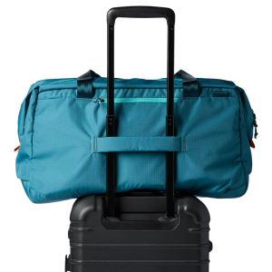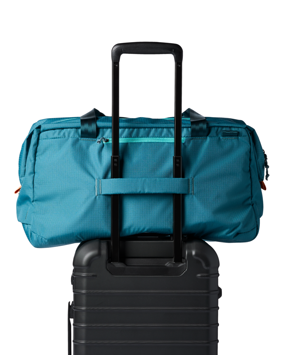 Take the scenic route with the Viaje 45L Travel Duffel in tow. Built with durable recycled polyester fabric. the Viaje features plenty of easy-access pockets. a laptop sleeve. and a spacious main compartment. There’s also a luggage pass-through strap on one side. so you can slide it over your roller for smooth airport cruising.