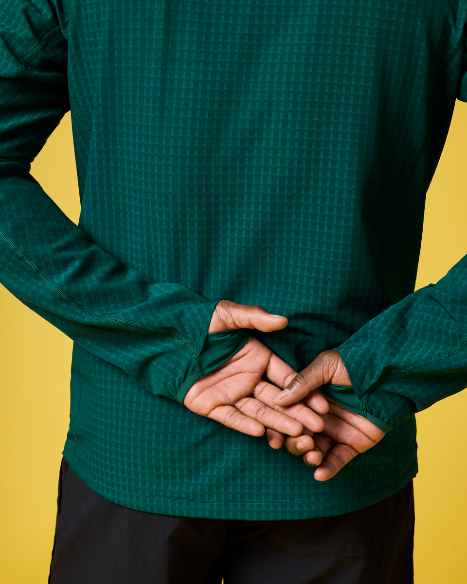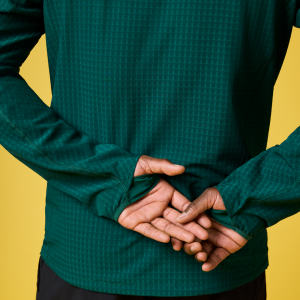 - Thumbhole on elasticized cuff